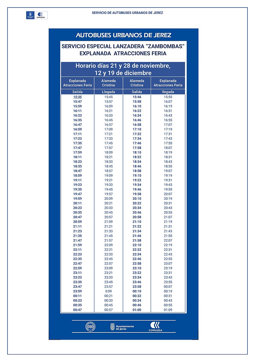 Servicio Especial Lanzadera Zambombas 2025 Autobuses Urbanos