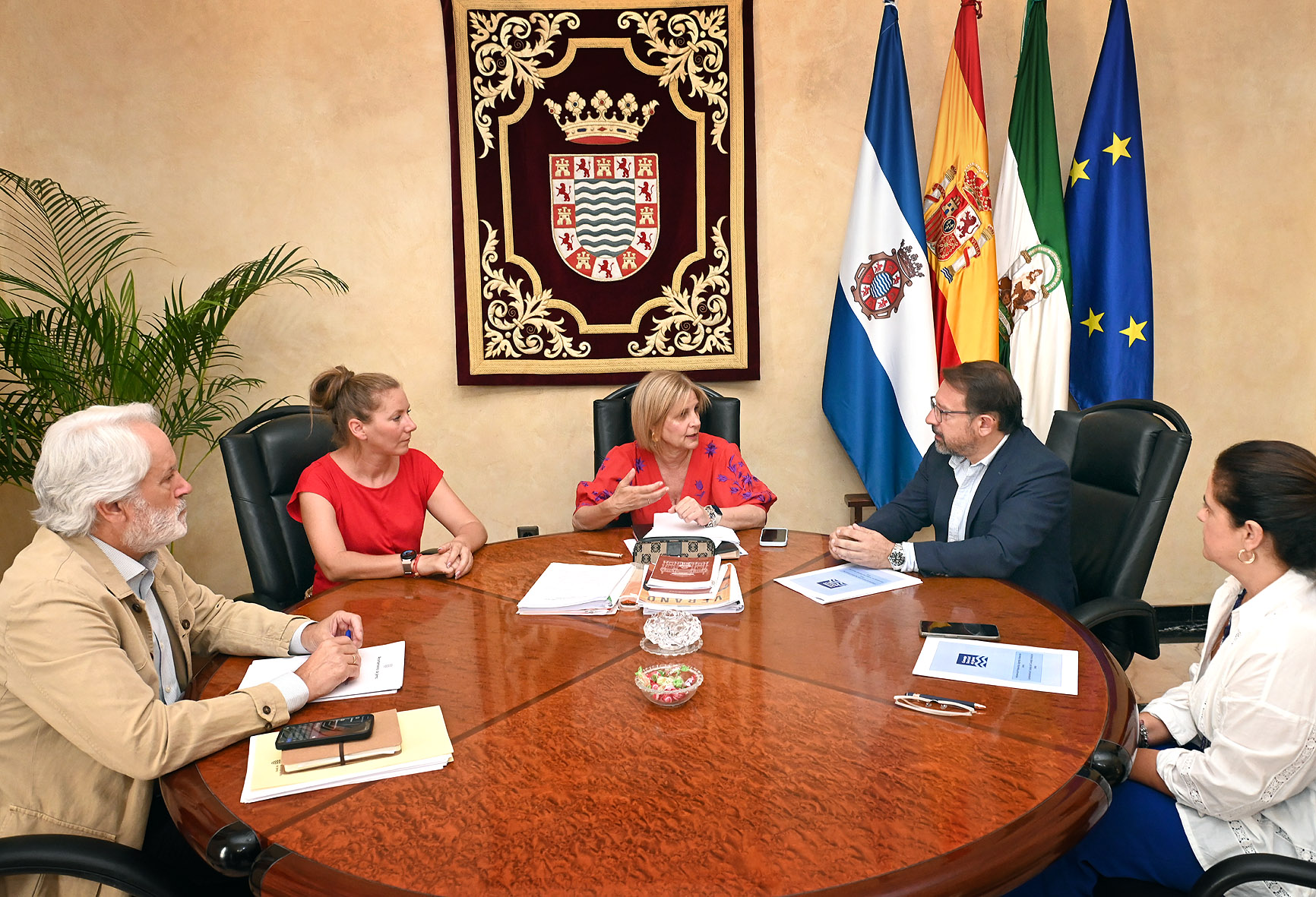 La alcaldesa de Jerez, María José García-Pelayo, acompañada del primer teniente de alcaldesa, Agustín Muñoz, ha recibido en el Ayuntamiento a Antonio Mariscal, presidente del Consejo Social de la Ciudad, y a su vicepresidenta, Vanesa Castillo. El objeto de dicho encuentro ha sido la presentación por parte de los representantes de este órgano del informe de propuestas al Plan de Acción de la Agenda Urbana de Jerez.