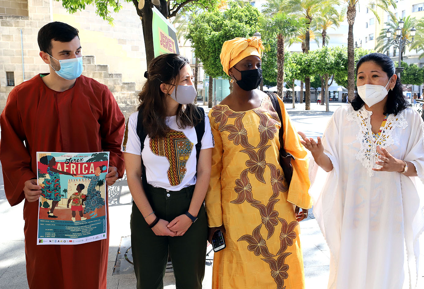 La delegada de Coordinación de Distritos y Voluntariado, Ana Hérica Ramos, ha participado con la Plataforma Jerez-Africa en el acto de conmemoración de este 25 de mayo, Día Mundial de África. Esta mañana se ha dado lectura a un Manifiesto en la Plaza del Arenal, con el que se ha reivindicado la erradicación de estereotipos y prejuicios contra las personas africanas, así como continuar visibilizando la sensibilización en la riqueza cultural y humana que aportan los vecinos y vecinas africanos residentes en la ciudad. La lectura ha corrido a cargo de Francisco Oliva, de Siloé, y el joven Mamadou Diallo, ante una nutrida representación de las diferentes entidades que forman parte de la plataforma.