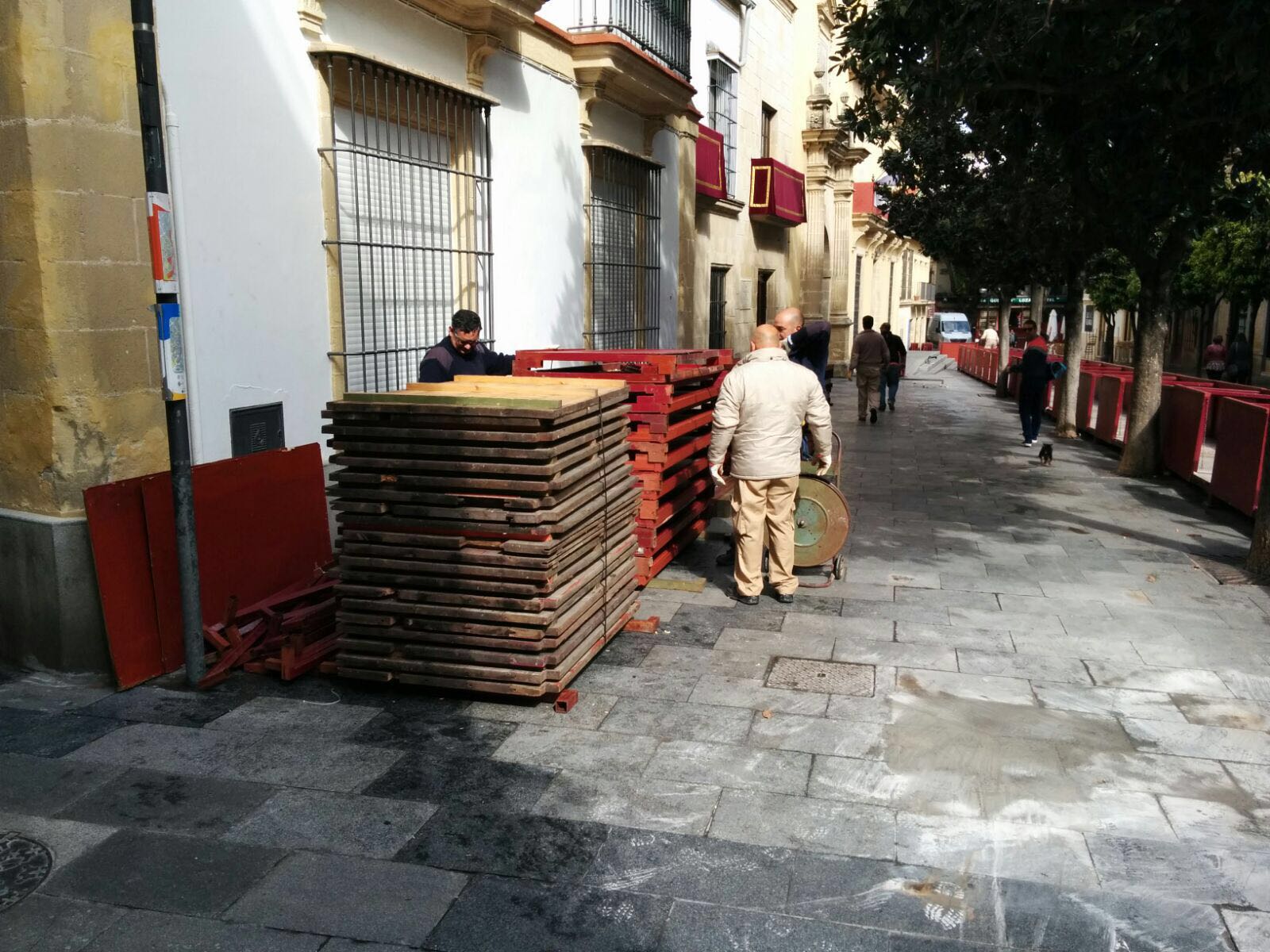 Hoy ha comenzado el desmontaje de los palcos de la carrera oficial de la Semana Santa. Un equipo de 12 operarios municipales ha iniciado las labores de recogida, habiendo culminado esta misma mañana el desmontaje de los palcos de la calle Larga, Lancería, Consistorio y José Luis Díez.