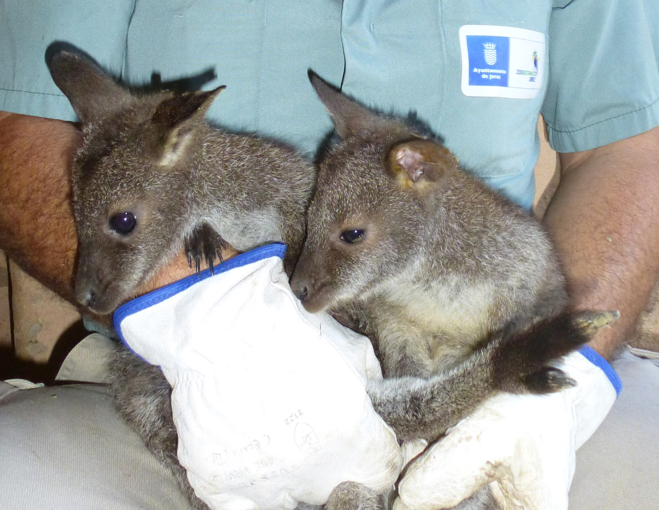 El personal del Zoobotánico ha realizado la captura de las dos crías de Canguro que nacieron hace dos meses en las instalaciones a fin de su marcaje y chequeo preventivo, procedimiento habitual que se realiza con todas las crías del parque. La captura ha sido laboriosa debido a las características propias de la especie. Se ha confirmado en el chequeo que son hembras. Una vez realizado el chequeo y marcaje han sido devueltas a su ubicación junto a su madre.