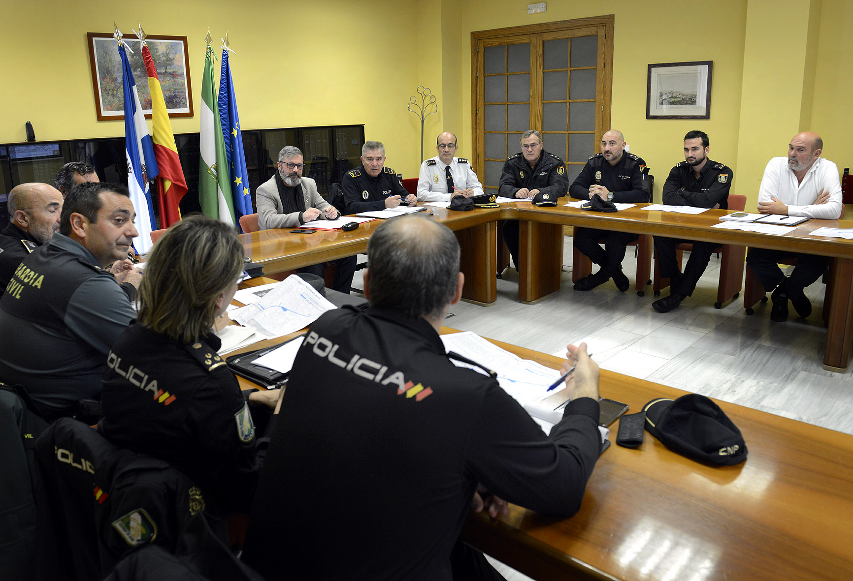 En la reunión han estado presentes el jefe de Policía Local, Manuel Benítez, el Comisario del Cuerpo Nacional de Policía, Francisco José García, el comandante del Puesto Principal de Jerez de la Guardia Civil, Fernando Comesaña, la inspectora de la Unidad adscrita de la Policía Autonómica, Amelia Herranz, y el coordinador local de Protección Civil, Tobías Perdigones, acompañados de responsables de los servicios operativos de cada cuerpo, así como el director de la Delegación de Movilidad, Pablo Montabes.
