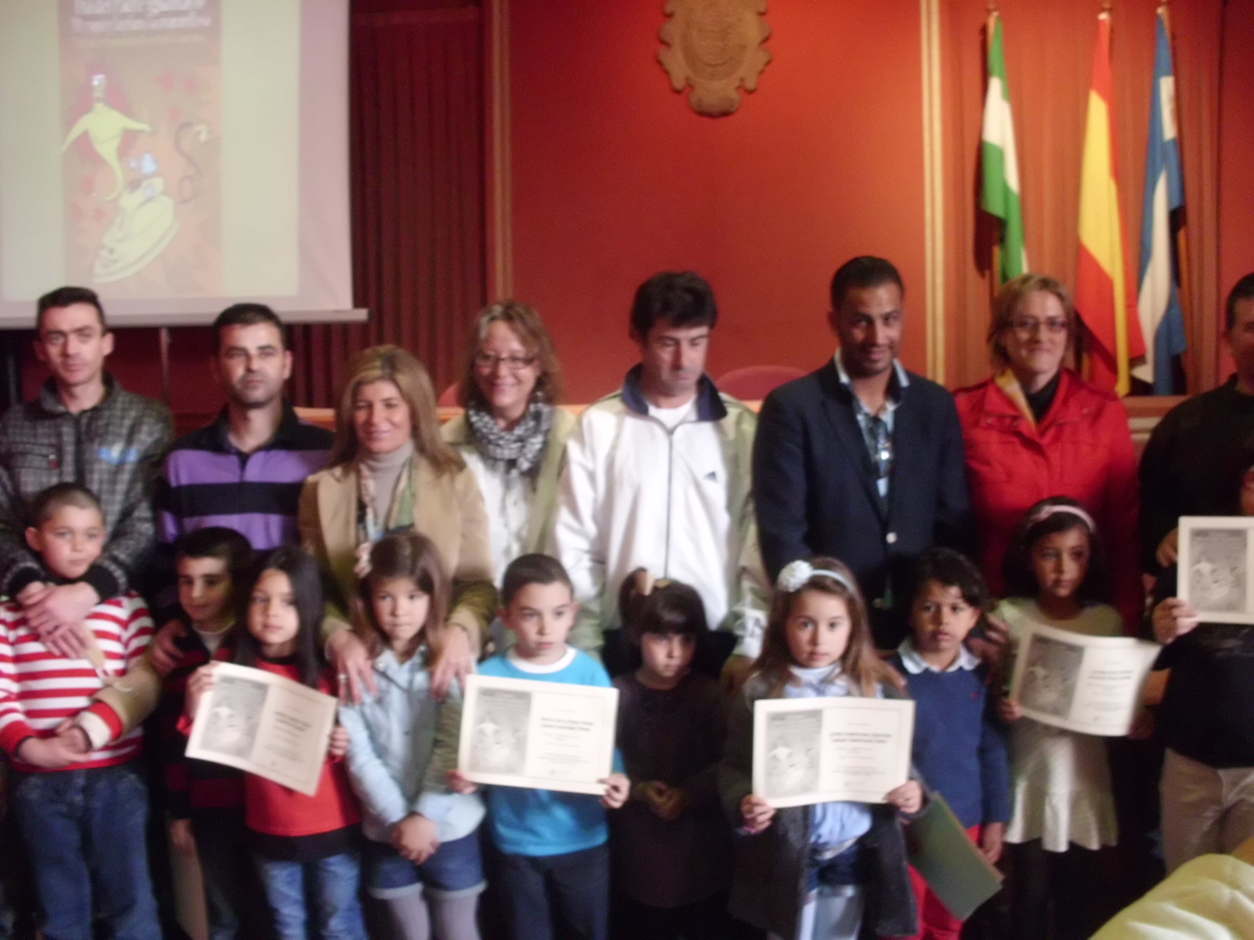 A continuación, los premiados y finalistas en las distintas categorías, acompañados de sus padres recogieron el galardón. Los primeros premios del certamen han sido: Antonio Flores Morales, de 5 años de edad, del CP Manuel de Falla en la categoría Infantil; Rebeca Arjones Gazsiova, de 7 años de edad, del CP Vallesequillo en la categoría de 1º, 2º y 3º de Primaria; y Javier Muñoz Merlo, de 9 años del edad, del CEIP Manuel de Falla en la categoría de 4º, 5º y 6º de Primaria.