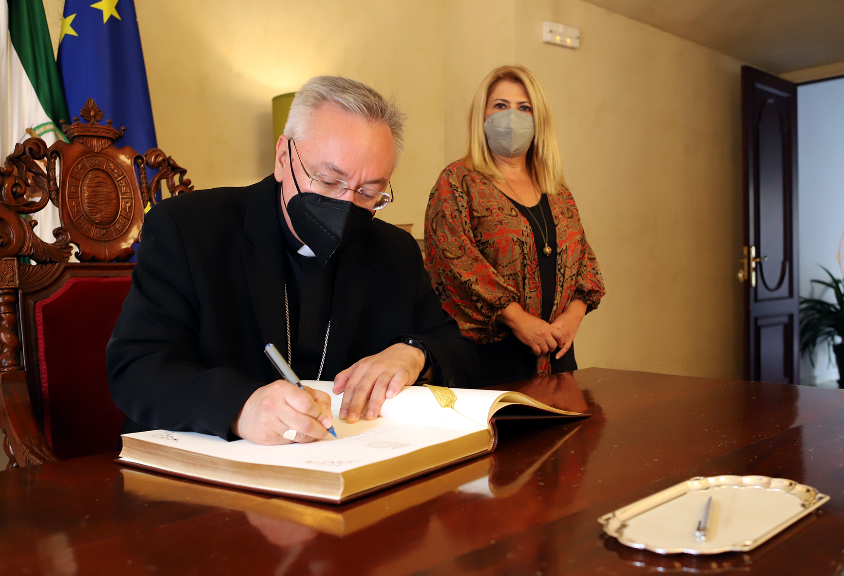 La alcaldesa, Mamen Sánchez, ha ofrecido esta mañana una recepción institucional a Monseñor José Rico Pavés, cuarto obispo de Asidonia-Jerez, desde su nombramiento y toma de posesión como sucesor del anterior prelado, José Mazuelos.