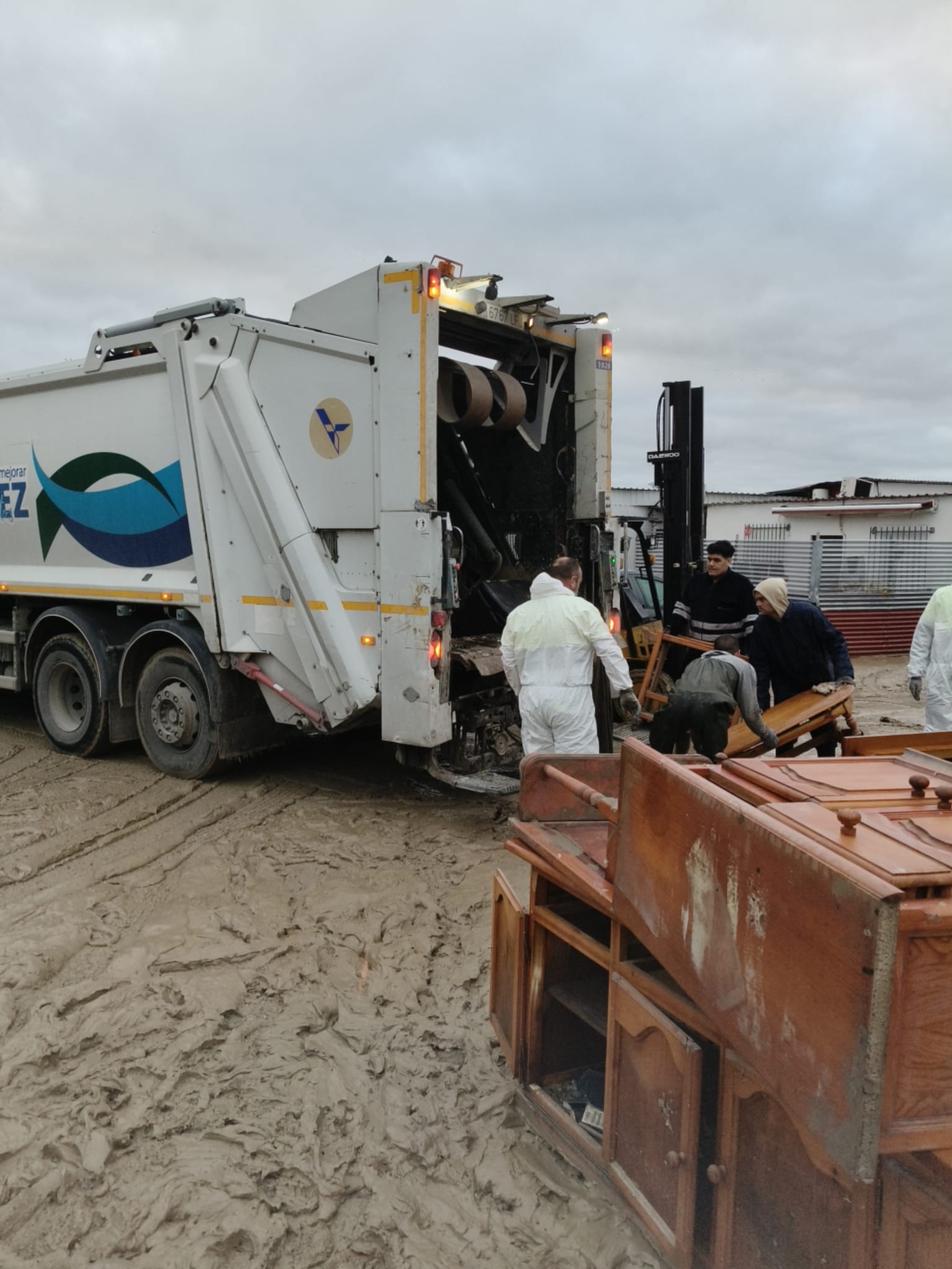 El operativo cuenta igualmente con maquinaria de UTE-Jerez, Aqualia e INUR. Señalar también que el Ayuntamiento ha facilitado productos de limpieza a las personas afectadas por la crecida del río para contribuir a la vuelta a la normalidad en sus hogares.