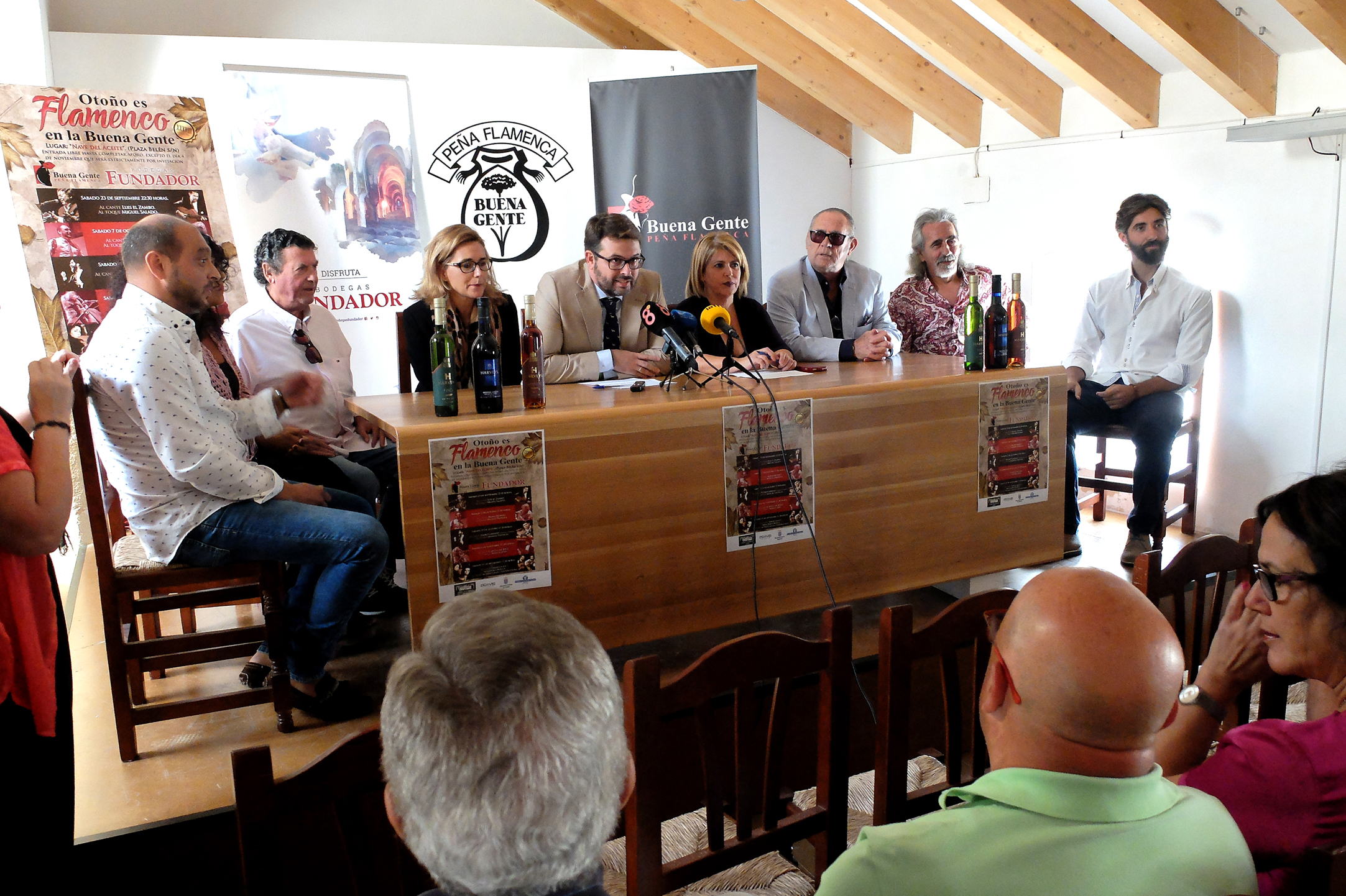 La alcaldesa, Mamen Sánchez, ha asistido junto al presidente de la Peña Flamenca Buena Gente, Nicolás Sosa, el presidente de la Federación de Peñas Flamencas, Manuel Moreno, la directora de Marketing de Bodegas Fundador, María Eugenia Herrera y numerosos artistas, ha asistido a la presentación del cartel ‘Otoño es flamenco en la Buena Gente’ que ofrecerá durante los meses de septiembre, octubre y noviembre cinco espectáculos a cargo de Luis El Zambo, Manuel Moneo, Pedro Garrido ‘Niño de la Fragua’, Capullo de Jerez, David Lagos y Melchora Ortega.