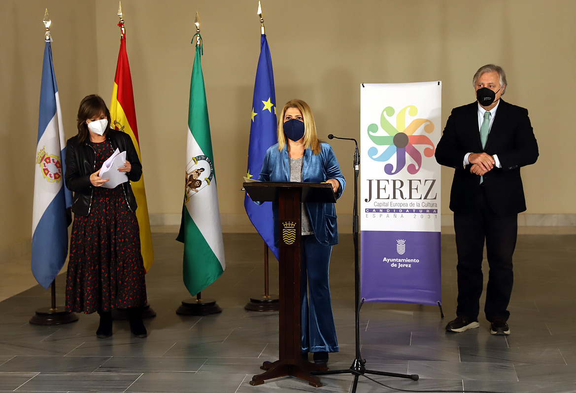 La alcaldesa de Jerez, Mamen Sánchez, acompañada por los tenientes de alcaldesa Laura Álvarez y Francisco Camas ha repasado las inversiones que se han realizado y las que están en marcha para la rehabilitación y puesta del patrimonio cultural por valor de casi tres millones de euros para el año 2021.