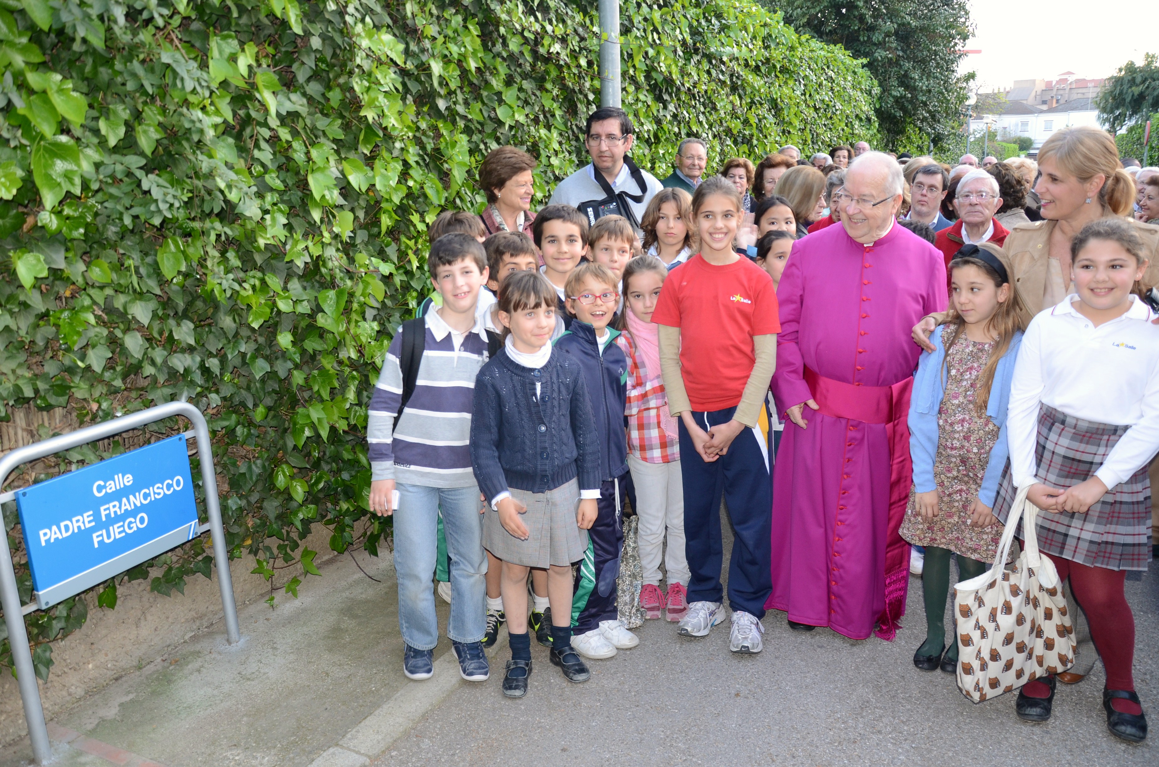 La alcaldesa, María José García-Pelayo, acompañada de miembros del gobierno municipal, ha inaugurado esta tarde la calle Padre Francisco Fuego, en reconocimiento a los 50 años de sacerdocio del párroco de Nuestra Señora de las Nieves, que se cumplieron el pasado 16 de junio, y reconociendo su labor pastoral y de ayuda a todo aquel que lo necesite. Concretamente, la Junta de Gobierno Local aprobó el pasado 8 de noviembre de 2013, el cambio de denominación de la actual calle del Fuego por la denominación de calle Padre Francisco Fuego.