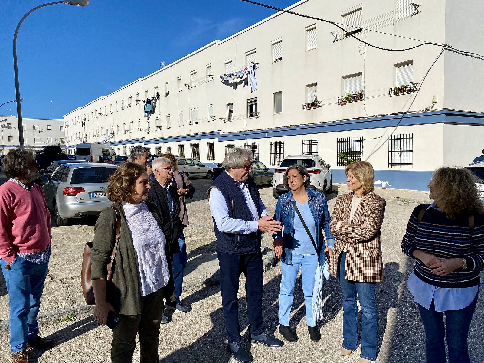 La alcaldesa de Jerez, María José García-Pelayo, acompañada del teniente de alcaldesa de Servicios Públicos, Jaime Espinar, la delegada de Urbanismo y Vivienda, Belén de la Cuadra, y representantes de AquaJerez ha realizado una visita a la barriada de La Asunción junto con la Asociación de Vecinos y representantes de la Federación Solidaridad.