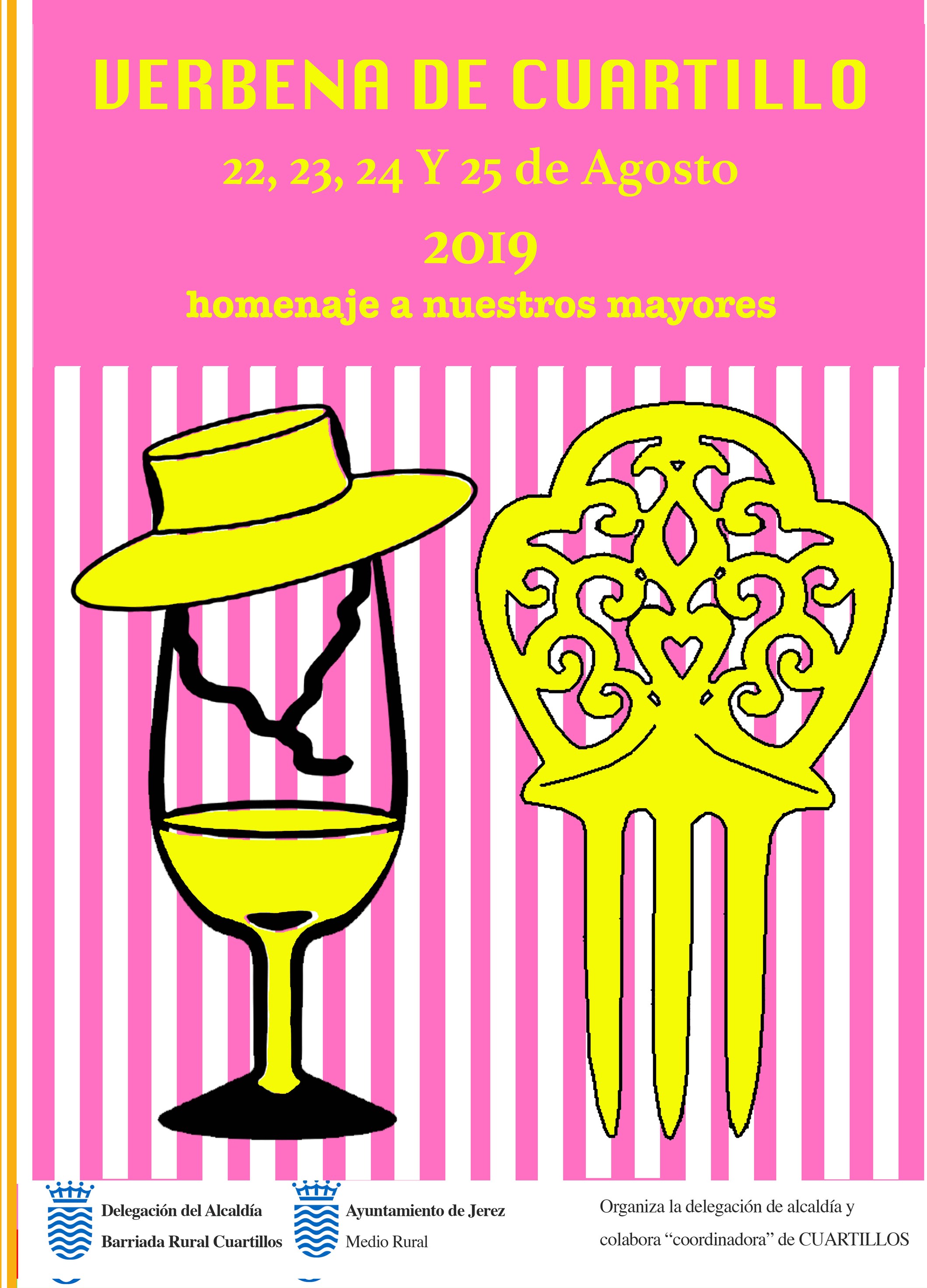 La barriada rural de Cuartillo vivirá la Verbena de 2019 del jueves 22 de agosto al domingo 25 de agosto. Cuatro intensos días de fiesta donde no faltarán los juegos tradicionales, las pruebas deportivas, las atracciones para los más pequeños, convivencias vecinales y espectáculos de música, flamenco y animación.