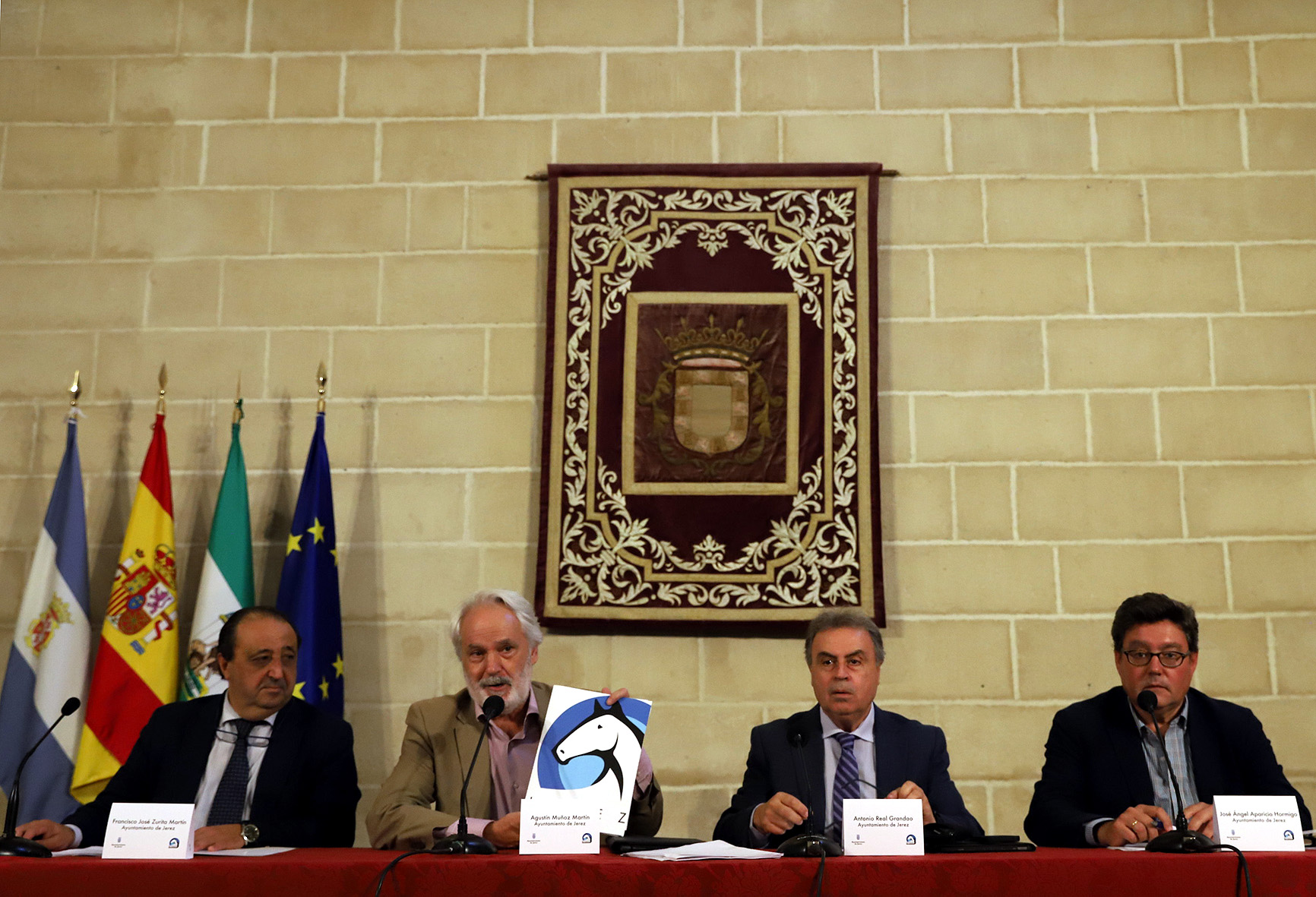 El teniente de alcaldesa de Presidencia, Agustín Muñoz, acompañado del teniente de alcaldesa de Turismo y Promoción de la Ciudad, Antonio Real y los delegados de Cultura y Fiestas, Francisco Zurita y de Desarrollo Educativo y Deportes, José Ángel Aparicio, ha presidido en los Claustros de Santo Domingo la segunda reunión de la Mesa Institucional del Caballo de Jerez, creada para impulsar el sector ecuestre.