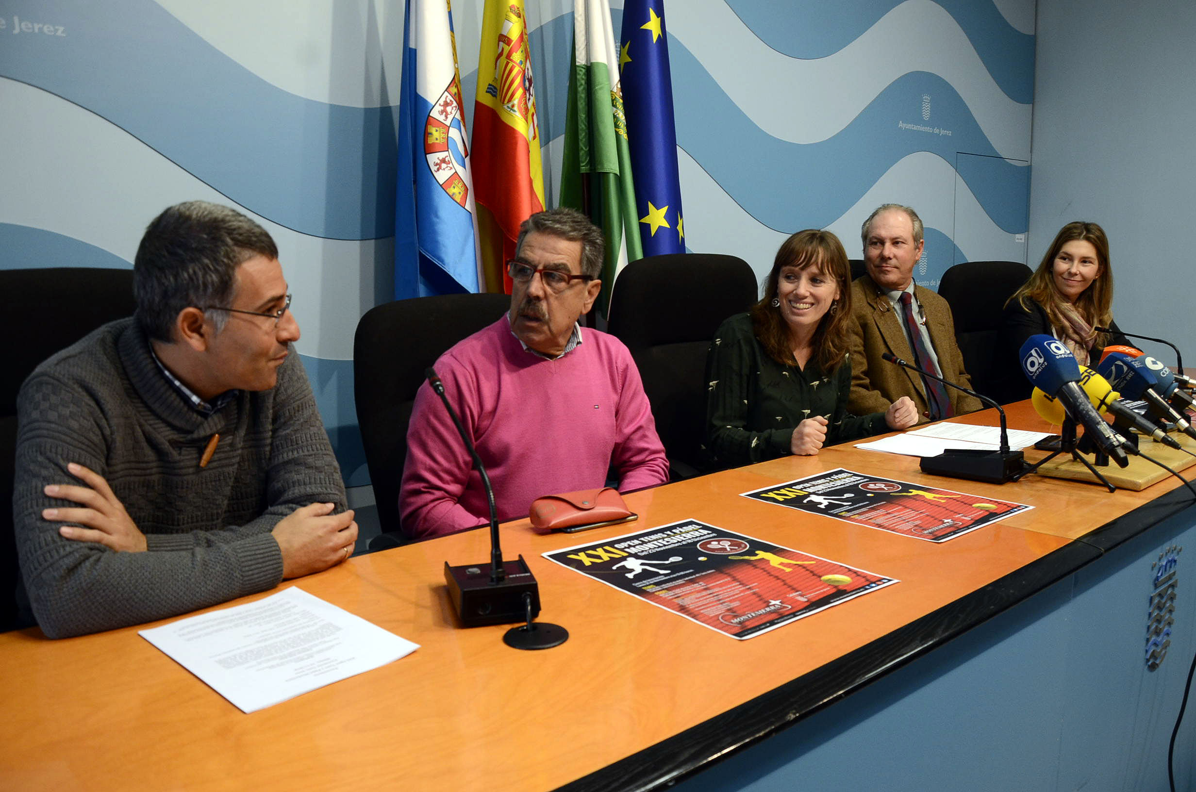 Al acto han asistido, junto a la teniente de alcaldesa, el director técnico del evento, Juan Manuel Contreras, acompañado del miembro de la Junta Directiva de la Asociación Tenis Jerez, Pedro Santos. Igualmente, han estado presentes el director-gerente de Montesierra, José Manuel Martín, y Loreto Martín, también perteneciente a la citada empresa patrocinadora.
