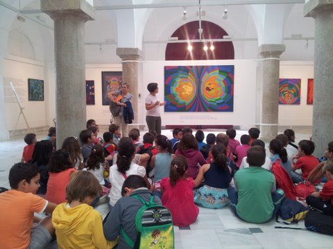 Multitud de escolares jerezanos visitan la exposición de Muhadin Kishev