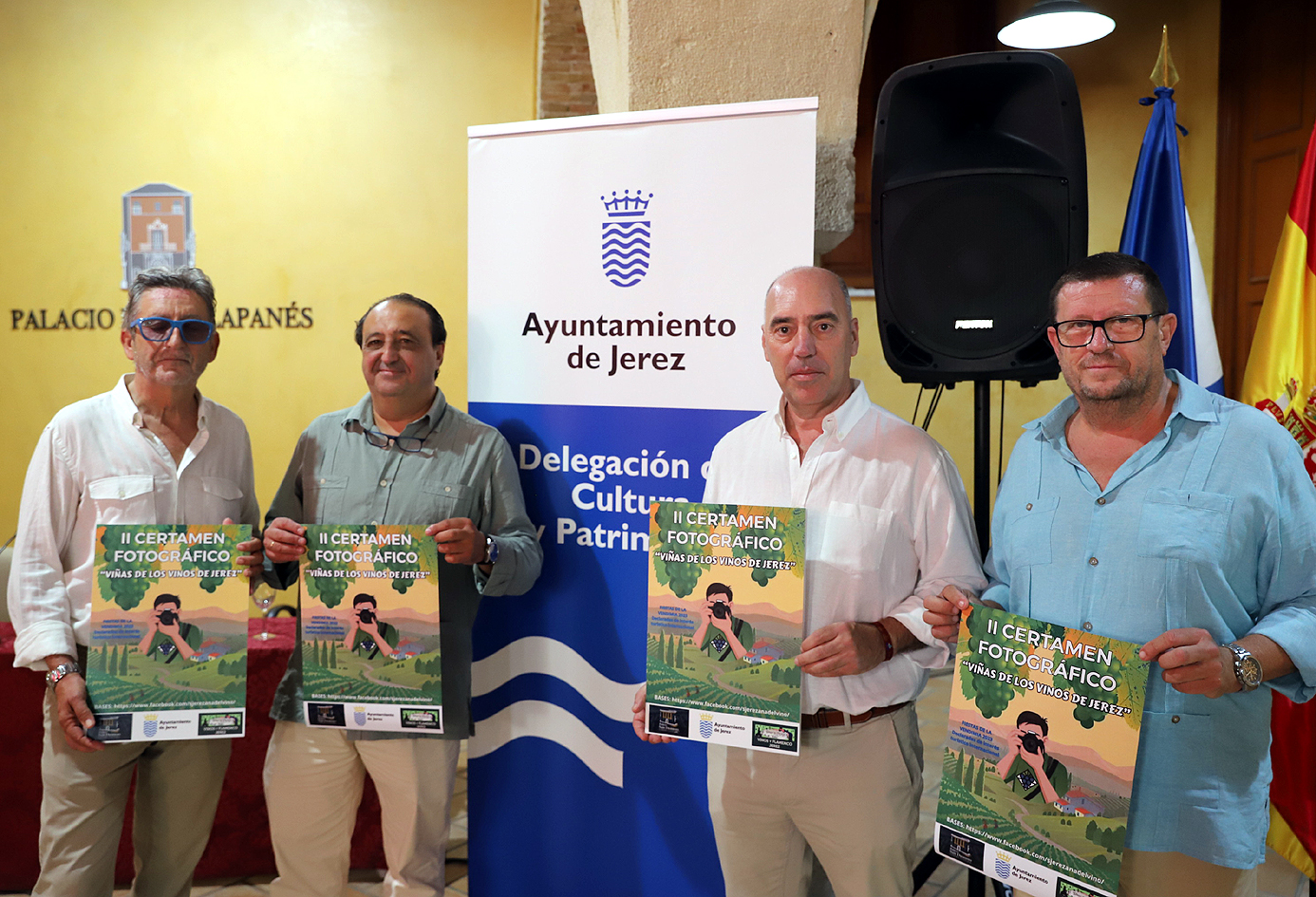 El delegado de Cultura, Fiestas, Patrimonio Histórico y Capitalidad Cultural, Francisco Zurita, ha presentado junto al presidente de la Sociedad Jerezana del Vino, Luis Flor, la segunda edición del Certamen fotográfico 'Viñas de los vinos de Jerez', que convoca la mencionada asociación, en colaboración con el Ayuntamiento de Jerez, en el marco de las Fiestas de la Vendimia. También han asistido a este acto Antonio Ramírez, de Tabanco El Pasaje, en calidad de patrocinador, y José Antonio Carmona en representación del jurado.