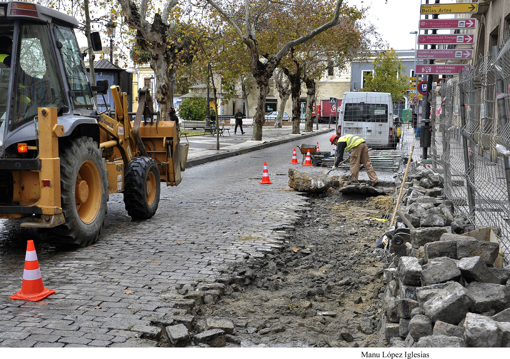 Obras en el adoquinado de la calle Sevilla para mejorar el tráfico