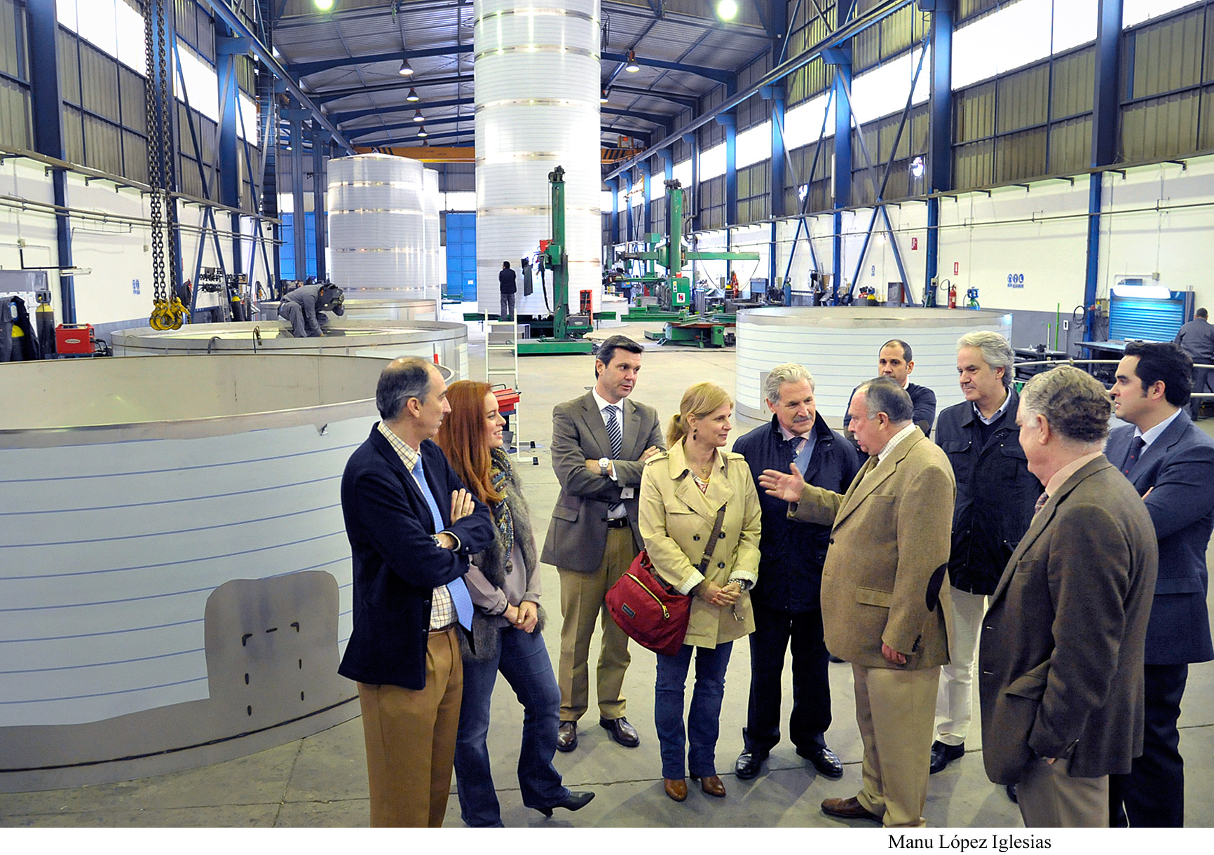 La alcaldesa, María José García-Pelayo, junto los delegados Agustín Muñoz y Francisco Cáliz, ha visitado hoy la empresa Herpasur, compañía ubicada en el Polígono Industrial El Portal y que cumple este año 2014 su vigésimo quinto aniversario. Los propietarios de la empresa, Salvador Cordero y Salvador Díez, han mostrado a la regidora el trabajo que efectúa la compañía, dedicada al diseño y fabricación de tanques y depósitos de acero inoxidable para diferentes sectores industriales.