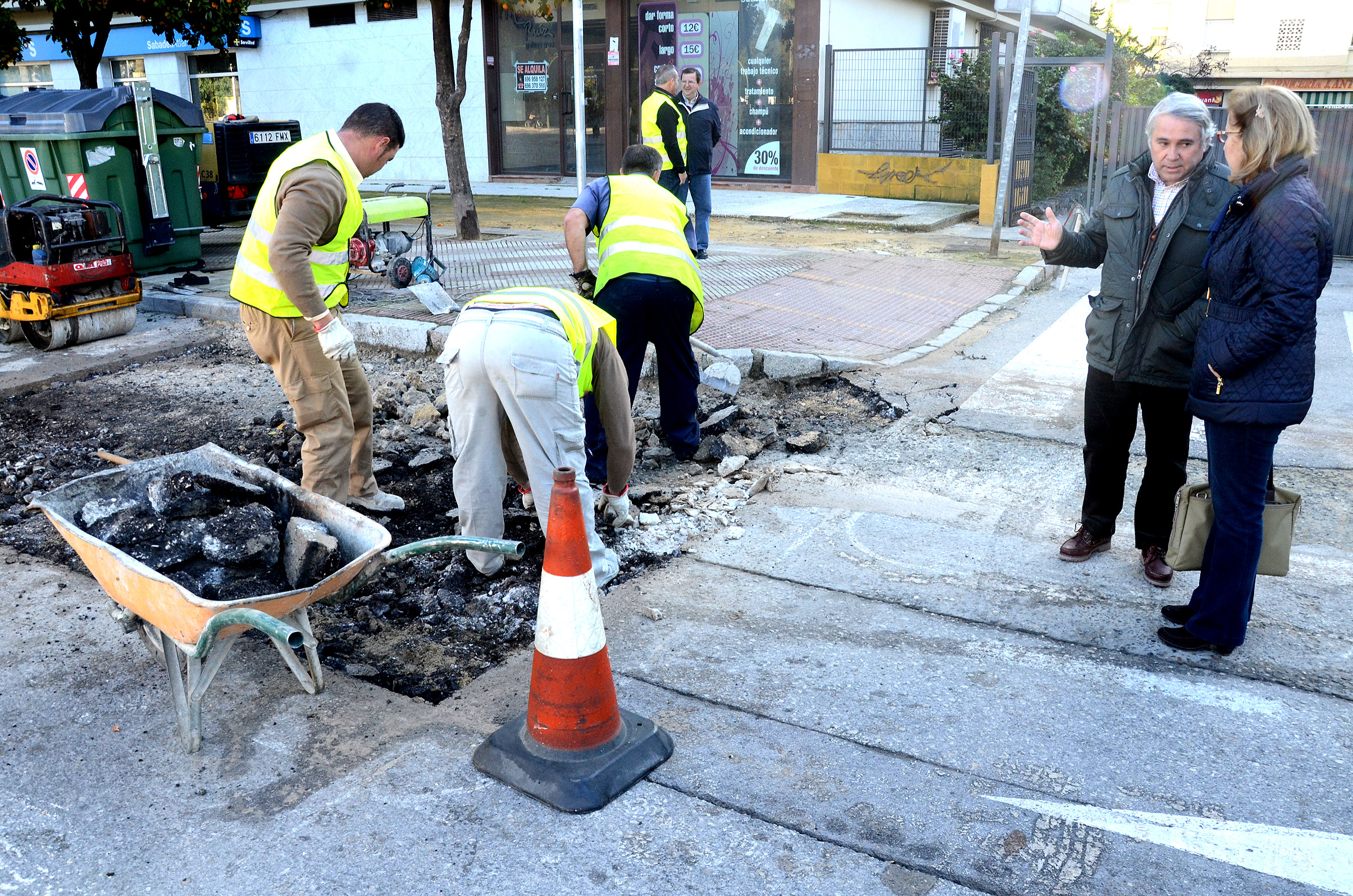 La concejal de Infraestructuras, María José Rúa, ha visitado esta mañana los trabajos de eliminación de hundimientos existentes en la avenida Alcalde Álvaro Domecq, en el tramo situado junto a la plaza del Caballo, que se incluyen dentro de la campaña de reparación de baches que Infraestructuras está acometiendo en diversas zonas de la ciudad. Además del arreglo de hundimientos, se están ejecutando labores de reparación de trozos de acerado próximos a arquetas que se encontraban en mal estado.